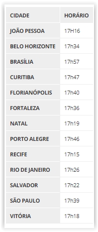 Os horários na região costeira do país são muito parecidos, pois a área é a de melhor visualização do eclipse. No entanto, o fenômeno pode ser observado em todo a Bahia em intensidade similar e com variações de duração.