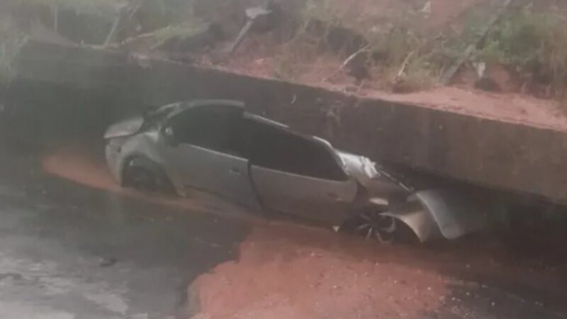 Carro é esmagado após deslizamento de terra em Simões Filho