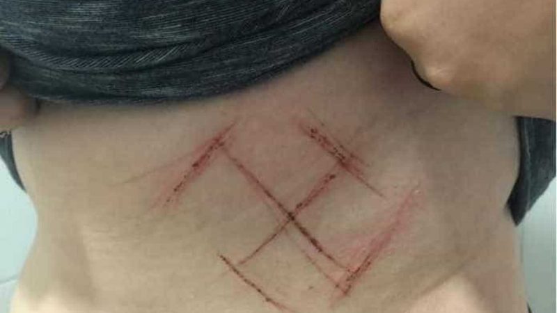 Laudo indica que jovem ferida com suástica se automutilou