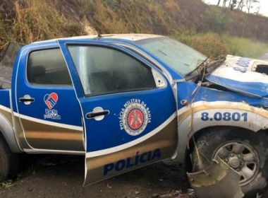 Viatura da PM capota em curva da BR-101 em Itapebi