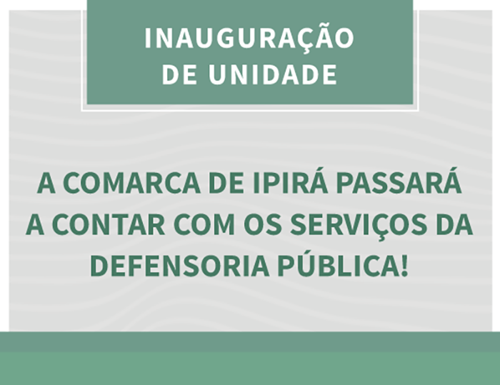 Pela primeira vez a Defensoria Pública do Estado da Bahia – DPE/BA vai abrir uma unidade na comarca de Ipirá,…