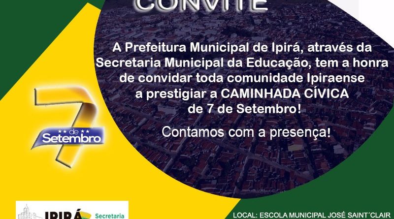 Prefeitura de Ipirá divulga convite para o 7 de Setembro