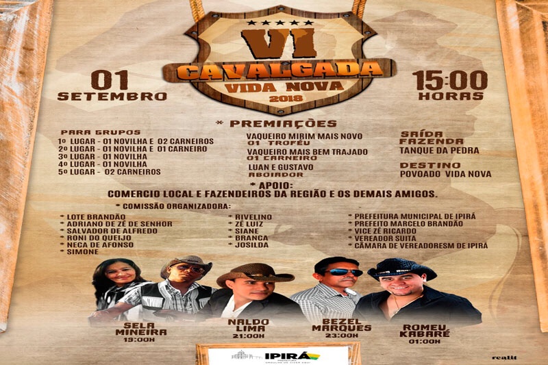 Dia 1º de setembro, acontecerá a VI Cavalgada da Vida Nova em Ipirá