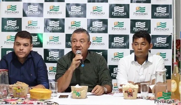 Foto: VR14 O Prefeito de Pintadas Valcyr Rios junto com o secretário de cultura esporte Geo e o de administração…