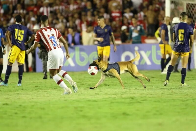Cachorro policial invade o campo em final do Pernambucano e rouba a bola do jogo