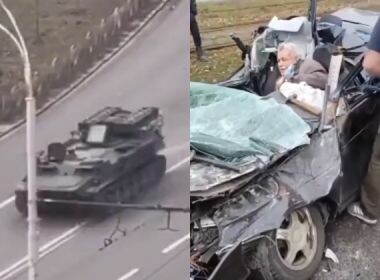 Tanque de guerra russo passa por cima de carro em Kiev, na Ucrânia; assista vídeo