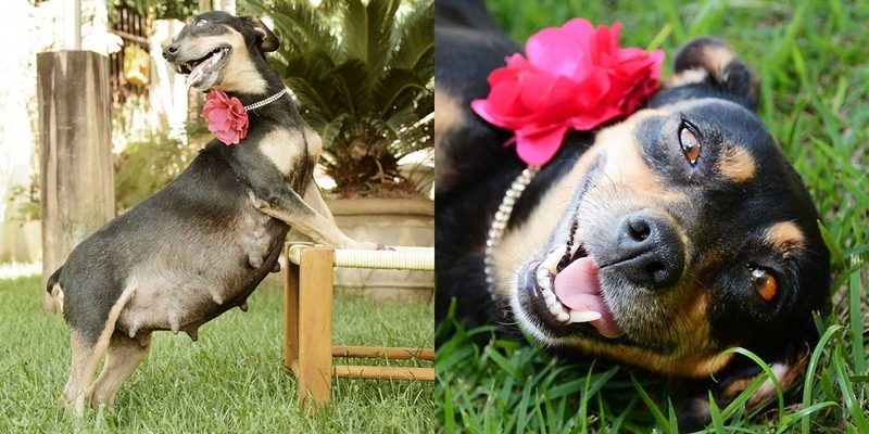 Cachorrinha grávida posa para a sua sessão de fotos de “Ensaio de Gestante”