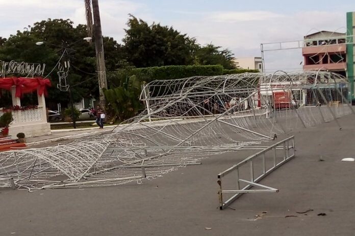 Parte de estrutura metálica da decoração natalina desaba em Ipirá