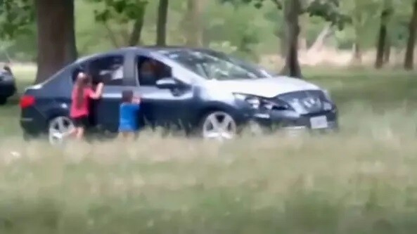 Crianças são obrigadas a esperar fora do carro enquanto mãe namora no banco de trás