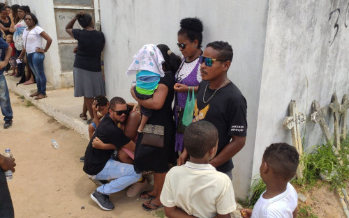 Familiares de Josefa e do bebê, no Cemitério de Plataforma — Foto: Vanderson Nascimento/TV Bahia