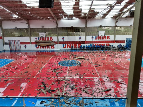 A ventania forte na região de Patamares acabou arracando parte do telhado do Centro Universitário Unirb. A faculdade está em período de férias. O CORREIO entrou em contato com a assessoria da unidade de ensino, que ainda não deu nenhum retorno.