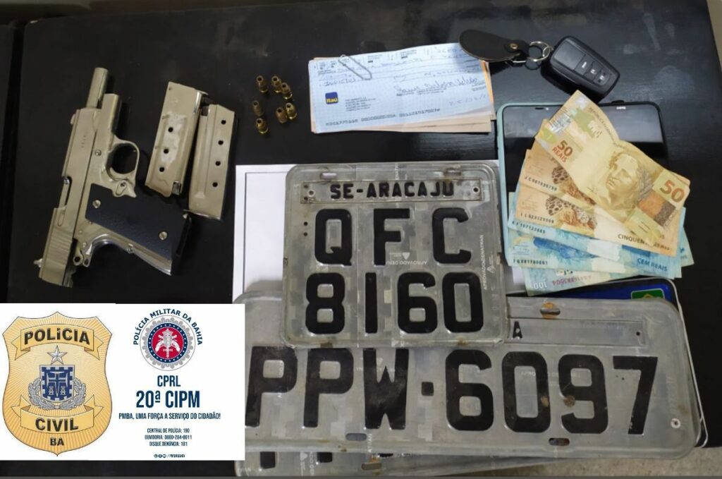 Dois homens foram flagrados por equipes do 3º e 5º pelotão da 20ª Companhia Independente de Polícia Militar (CIPM/ Santo Amaro), na noite de quarta-feira (20), com arma e veículo clonado, em um posto de combustível, nas proximidades da BR-101, na cidade de Conceição do Jacuípe.