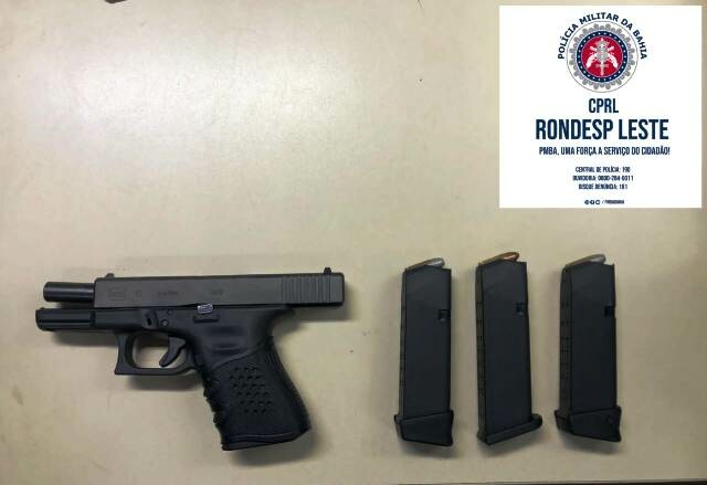 Nas buscas pessoais com um dos abordados, foram encontrados, uma pistola Glock calibre 9mm; três carregadores; 47 munições; um coldre e dois portas carregadores. O suspeito e todo o material apreendido foram apresentados na Central de Flagrantes para adoção das medidas cabíveis.