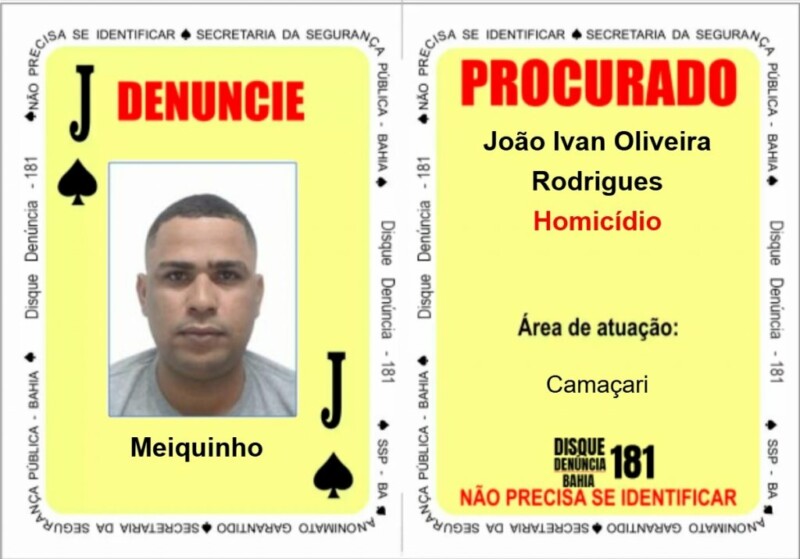 Três foragidos da Justiça, que lideram facções com atuação na Região Metropolitana de Salvador (RMS), na cidade de Camaçari, passam a integrar nesta quarta-feira (27), o Baralho do Crime da Secretaria da Segurança Pública.