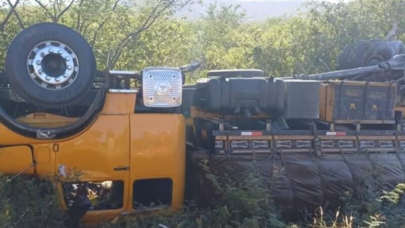 Motorista de caminhão-tanque fica preso às ferragens após veículo tombar perto de Jequié