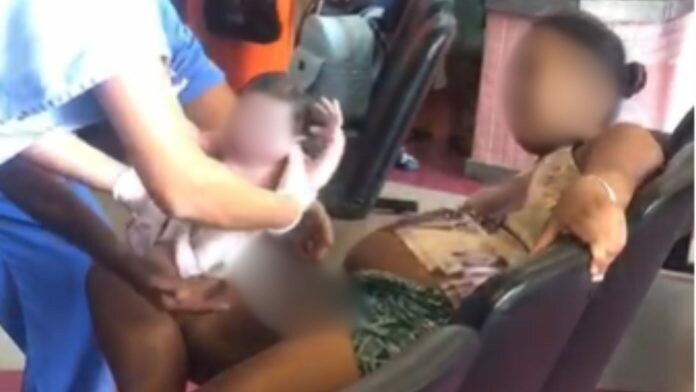 O vídeo de uma mulher, grávida, dando à luz ao bebê em uma das cadeiras da recepção da Maternidade Regional…