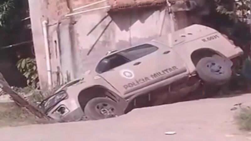 VÍDEO: Viatura da PM cai em córrego durante troca de tiros em Pernambués; três policiais ficaram feridos