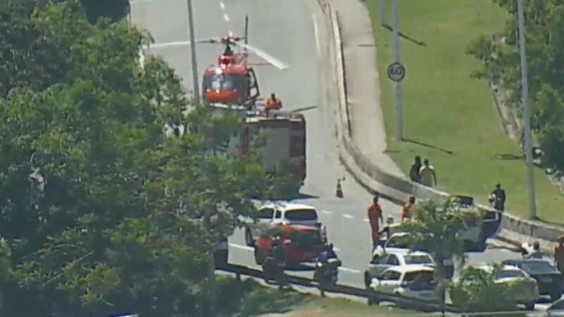 Helicóptero do Corpo de Bombeiros pousa em avenida movimentada de Salvador para socorrer vítima de acidente