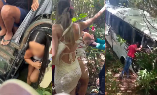 VÍDEO: passageiros saem de ônibus pela janela após veículo cair em ribanceira