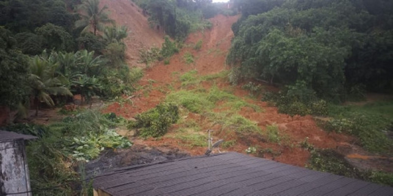 Após forte chuva, casas são atingidas por deslizamento de terra na Valéria, em Salvador