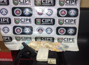 Pasta base de cocaína e pistola apreendidas em Feira de Santana