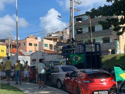 Um grupo ainda tímido de apoiadores de Jair Bolsonaro se reúne em Amaralina, em Salvador, para as manifestações em apoio…