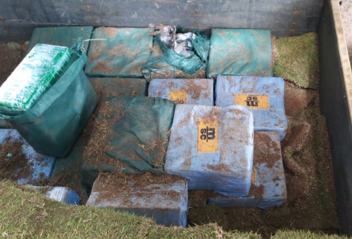 Cão farejador encontra meia tonelada de cocaína escondida em grama levada por caminhão