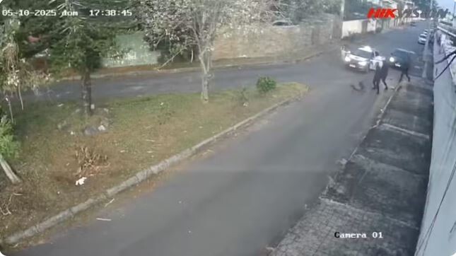 Uma câmera de segurança flagrou o momento que um homem é agredido com socos e chutes por ao menos três…
