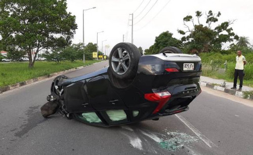 Carro capota após motorista tentar desviar de cachorro em Feira de Santana