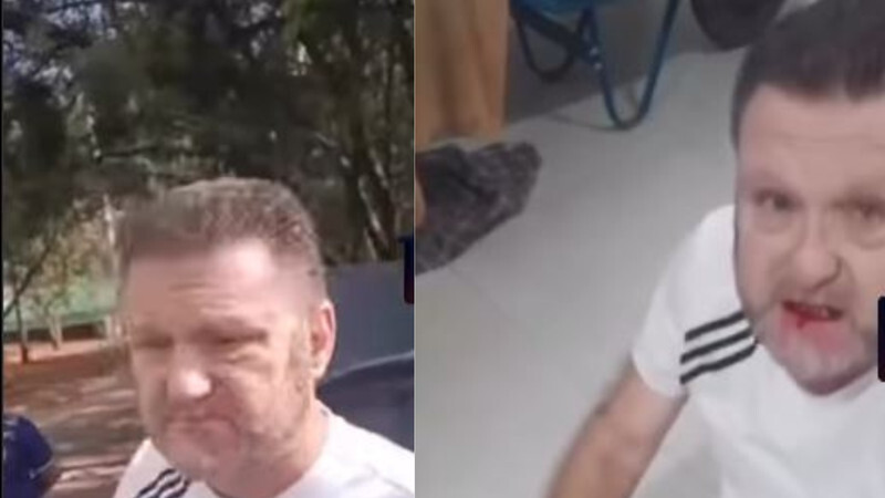 Um homem foi linchado após supostamente mostrar as partes íntimas para crianças. Nas imagens, é possível ver uma pessoa ao…