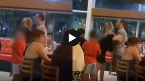 Traição! Esposa flagra marido com amante e causa barraco em restaurante; ASSISTA VÍDEO