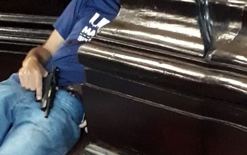 Imagens feitas por câmeras de segurança mostram pessoas sendo atendidas pelas equipes de socorro na porta da igreja. Familiares de pessoas que estavam na Catedral no momento dos disparos buscam informações com autoridades no local.