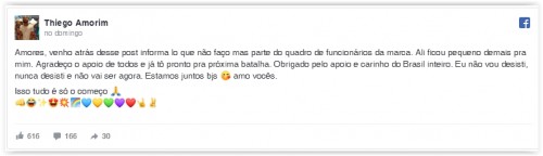 “Amores, venho através desse post informá-los que não faço mas parte do quadro de funcionários da marca. Ali ficou pequeno demais pra mim”, postou o vendedor.