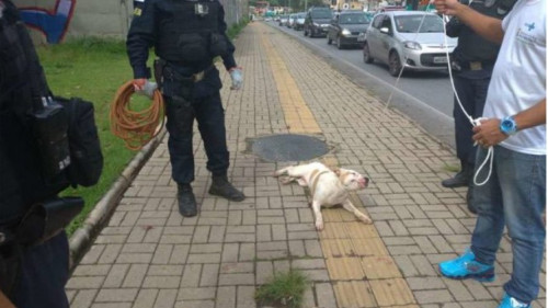 Um cão da raça pitbull foi baleado, nesta sexta-feira (7), por guardas municipais após atacar seis pessoas em Belo Horizonte (MG). O animal foi socorrido com vida para uma clínica veterinária.