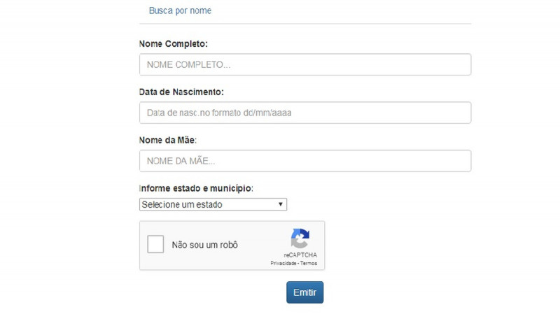 E inserir as mesmas informações solicitadas pelo site: nome completo, data de nascimento, nome da mãe e estado.