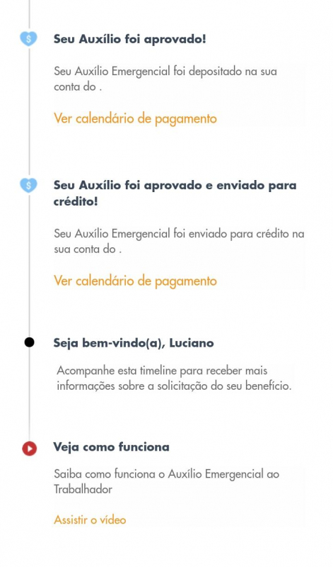 De acordo com o site do auxílio emergencial, Luciano Hang teve o auxílio aprovado, enviado para crédito e depositado. A conta de destino, porém, não é informada, nem as datas de quando foi feito o cadastro ou de quando recebeu o benefício de R$ 600.