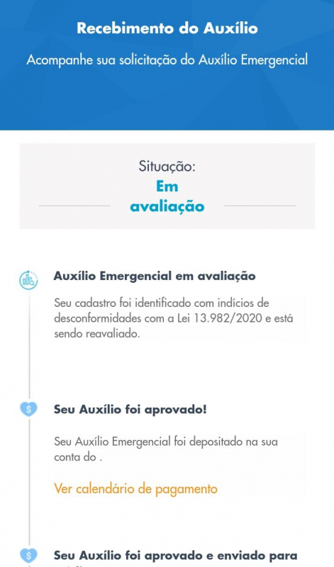 Hoje, contudo, o auxílio emergencial de Hang está em situação de avaliação. “Seu cadastro foi identificado com indícios de desconformidades com a Lei 13.982/2020 e está sendo reavaliado.”