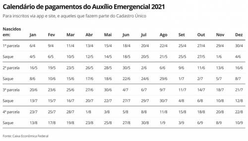 Veja abaixo os calendários de pagamento.