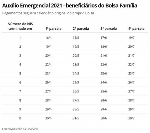 Os pagamentos da primeira parcela do benefício, para todos os públicos, vão até 30 de abril.