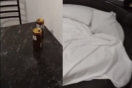 No quarto, os policiais encontraram indícios de que o grupo havia consumido bebidas alcoólicas. A princípio, segundo os militares, a criança não presenciou nenhuma cena de sexo, mas contou que viu um dos homens tentando beijar a mãe dele.