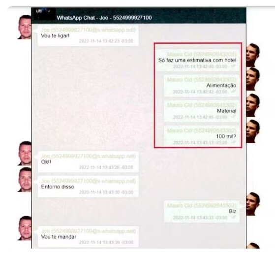 Em outra conversa anexada pela PF, Cid pediu a Rafael Martins que estimasse os custos de trazer pessoas para participarem da manifestação em Brasília. Veja: