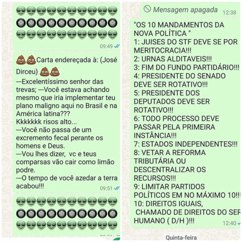 O homem que morreu ao promover um ataque, na noite desta quarta-feira (13), na Praça dos Três Poderes, em Brasília, usou o WhatsApp para enviar mensagens provocando e ameaçando instituições da República, políticos e até o apresentador do Jornal Nacional, William Bonner.