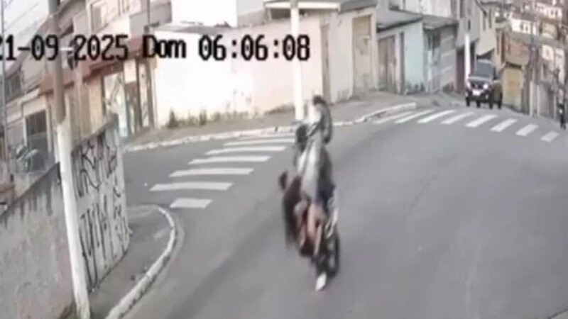 VÍDEO: Casal sofre acidente após motoqueiro tentar chamar atenção da namorada