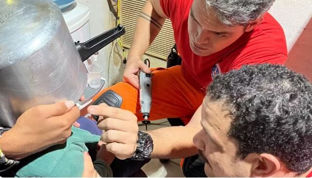 Menino de 2 anos fica mais de uma hora com panela de pressão presa na cabeça