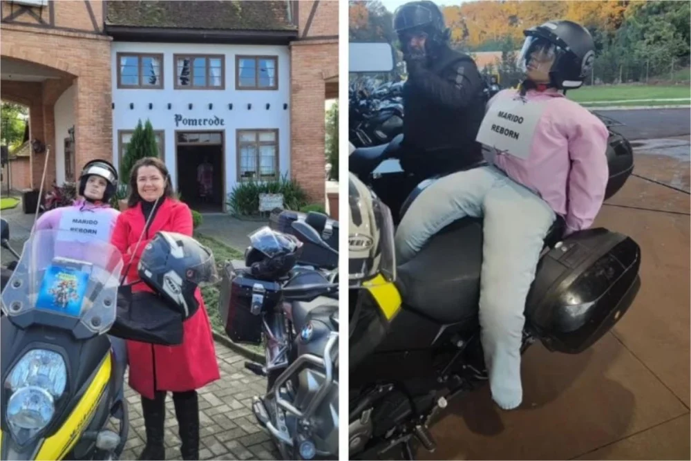 ‘Marido reborn’: mulher coloca boneco na garupa da moto e percorre mais de 2 mil quilômetros