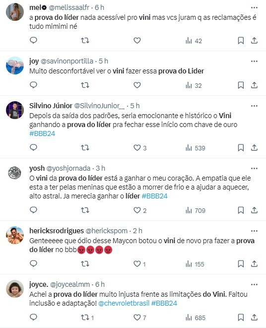 A primeira prova do líder, do BBB 24, já gerou discussão nas redes sociais. O motivo foi a dificuldade enfrentada por um dos participantes para realizar o desafio. Trata-se de Vinicius Rodrigues, que é paratleta, medalhista paralímpico e recordista mundial dos 100 metros rasos da classe T63.