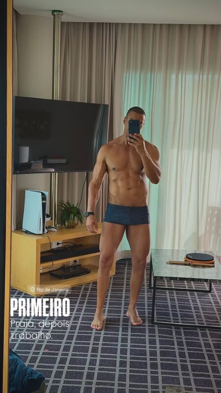 O apresentador Thiago Oliveira chamou a atenção nas redes sociais no último domingo (1º) ao publicar uma selfie direto da praia. De sunga, o jornalista exibiu a boa forma e escreveu na legenda: “Primeiro praia, depois trabalho”.