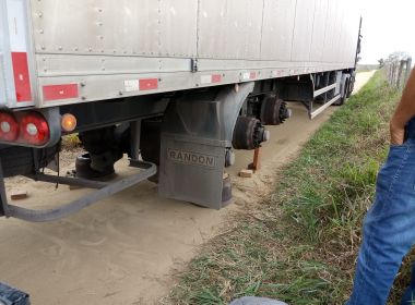 Criminosos roubaram as rodas de uma carreta na madrugada desta sexta-feira (16), na região do Distrito Stela Dubois, Entroncamento de Jaguaquara, localidade que fica nas margens da Rodovia Santos Dumot-BR-116.