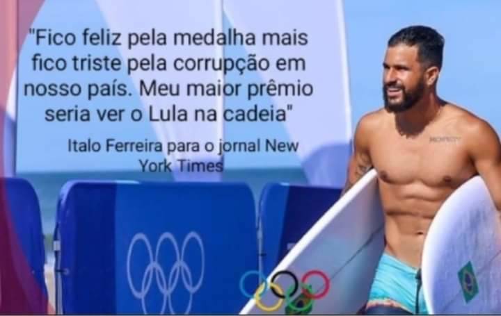 O surfista Ítalo Ferreira disse ao New York Times que seu maior prêmio seria ver o Lula na cadeia?