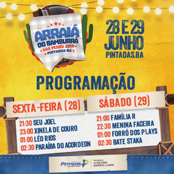 Começa na noite desta sexta-feira (28) e vai até amanhã (sábado, 29), o tradicional Arraiá do Bamburrá, nome dado aos festejos de São Pedro de Pintadas.